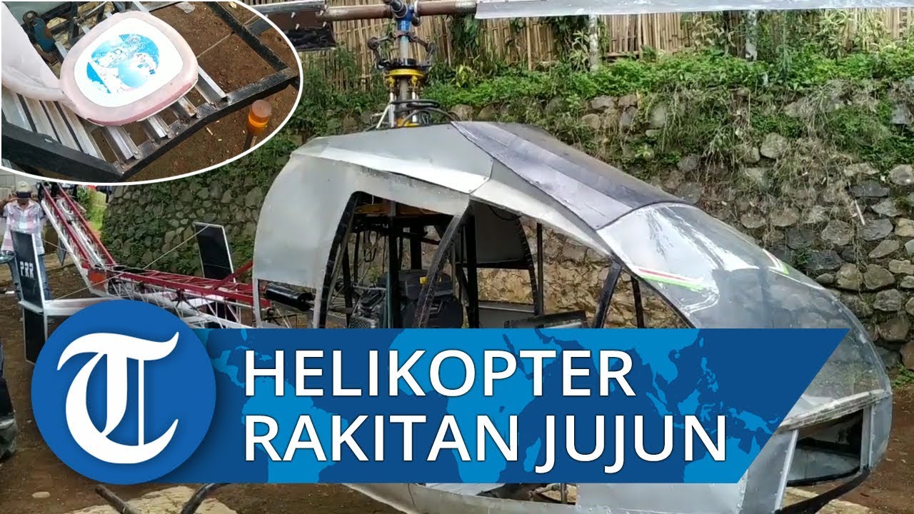 TRIBUN-VIDEO.COM - Helikopter rakitan milik Jujun Juanedi (42), warga Kampung Cibubuay, Sukabumi, Jawa Barat, terpampang di halaman rumahnya pada Rabu (20/11/2019) siang.