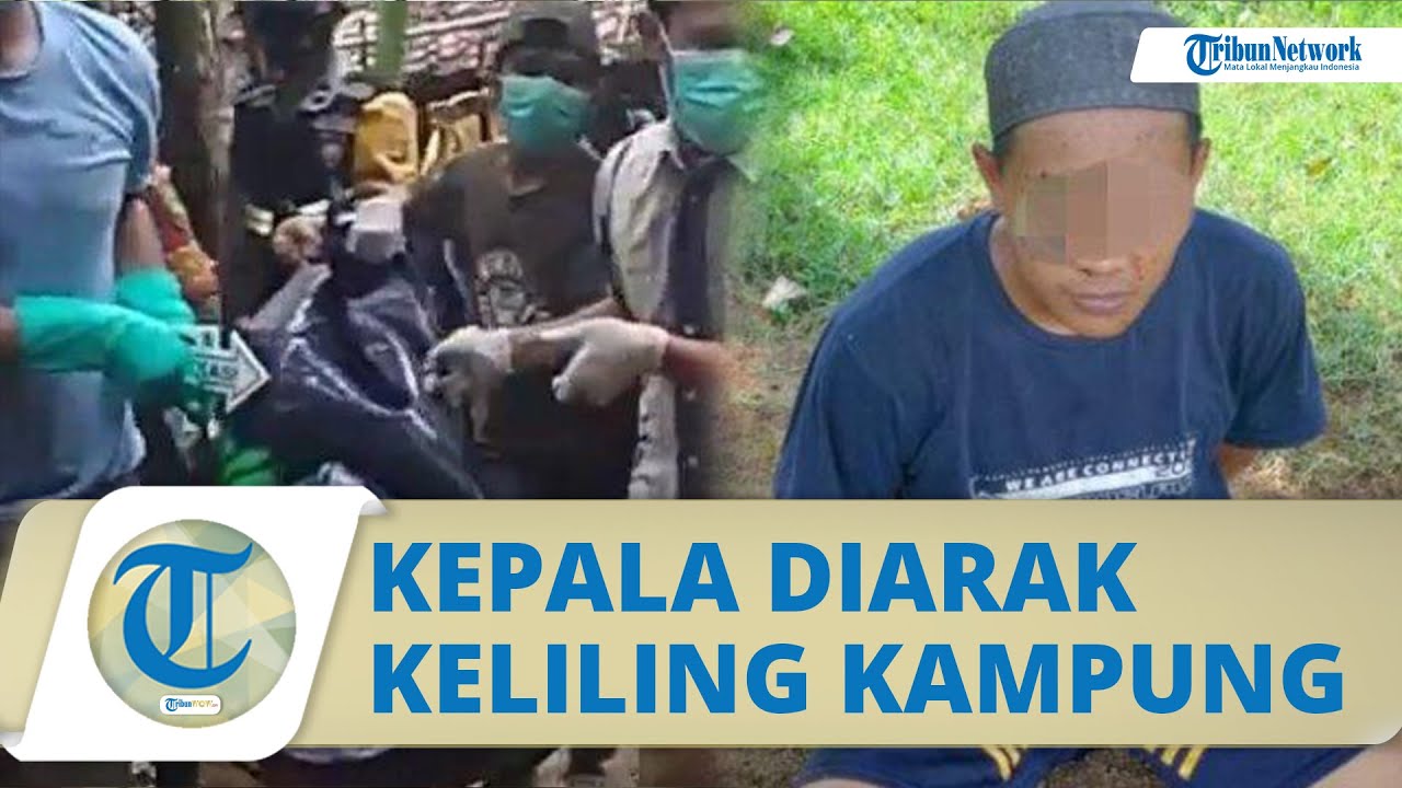 Setelah melakukan pemenggalan terhadap leher ayahnya, pelaku PK sempat membawa keliling leher korban memperlihatkan kepada para tetangga.