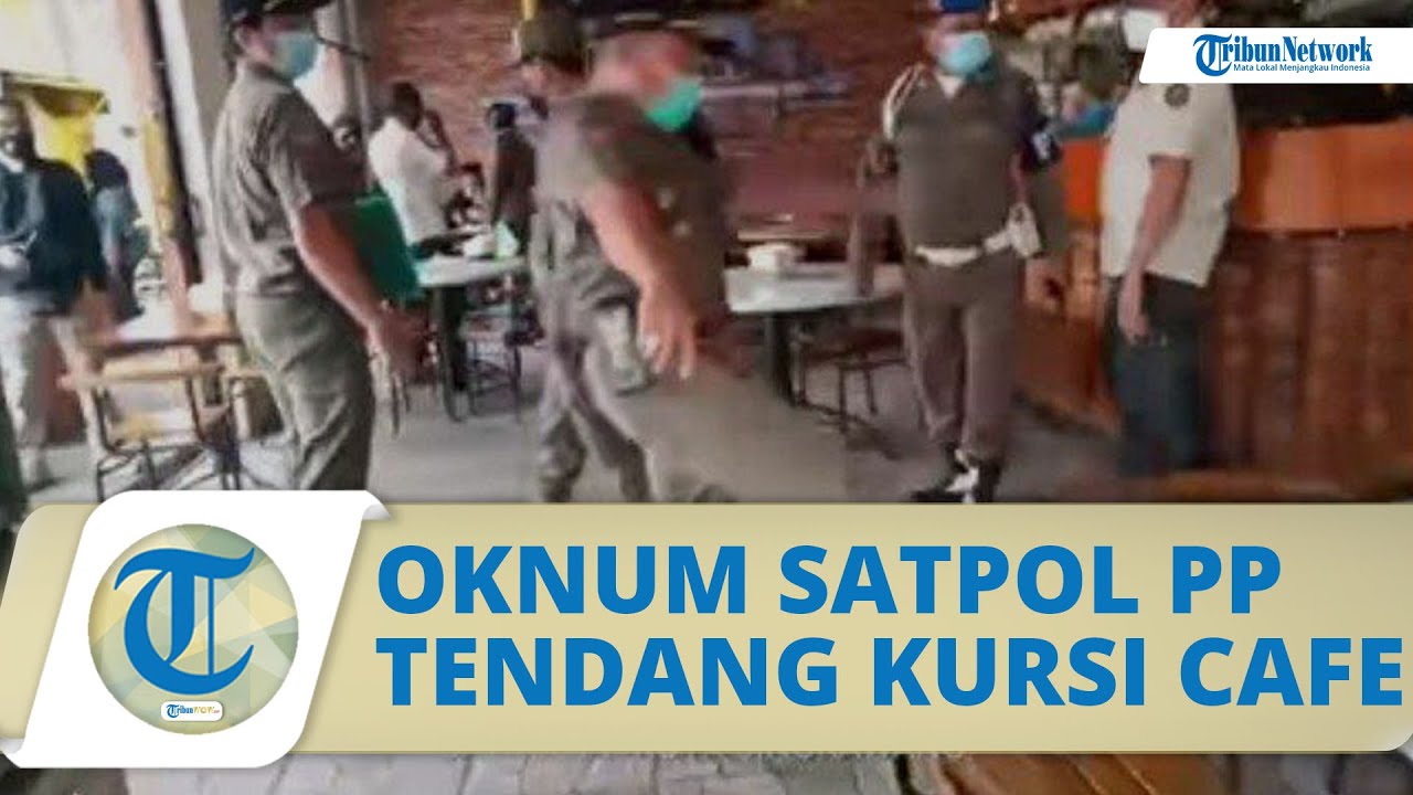 Kemudian, tampak seorang oknum petugas Satpol PP menendang kursi dalam cafe tersebut sembari memarahi karyawan yang tengah bekerja.