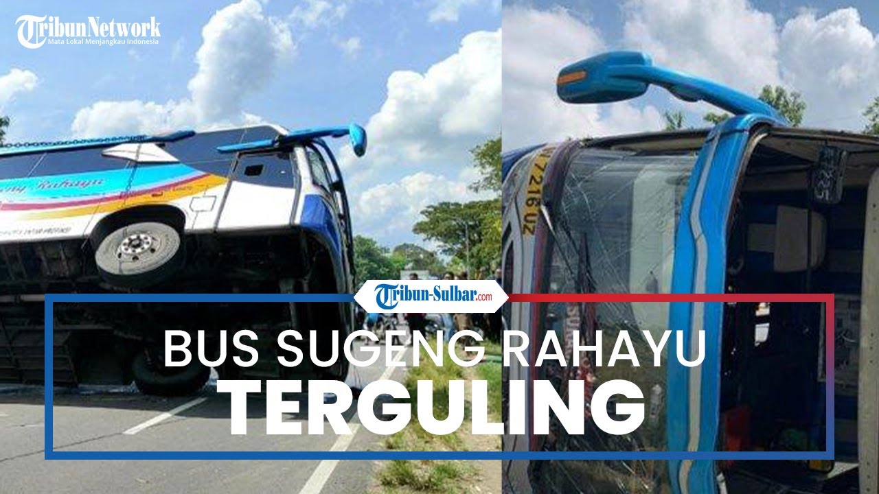 Bus Sugeng Rahayu terguling setelah berusaha mendahului Bus Sugeng Rahayu lainnya.