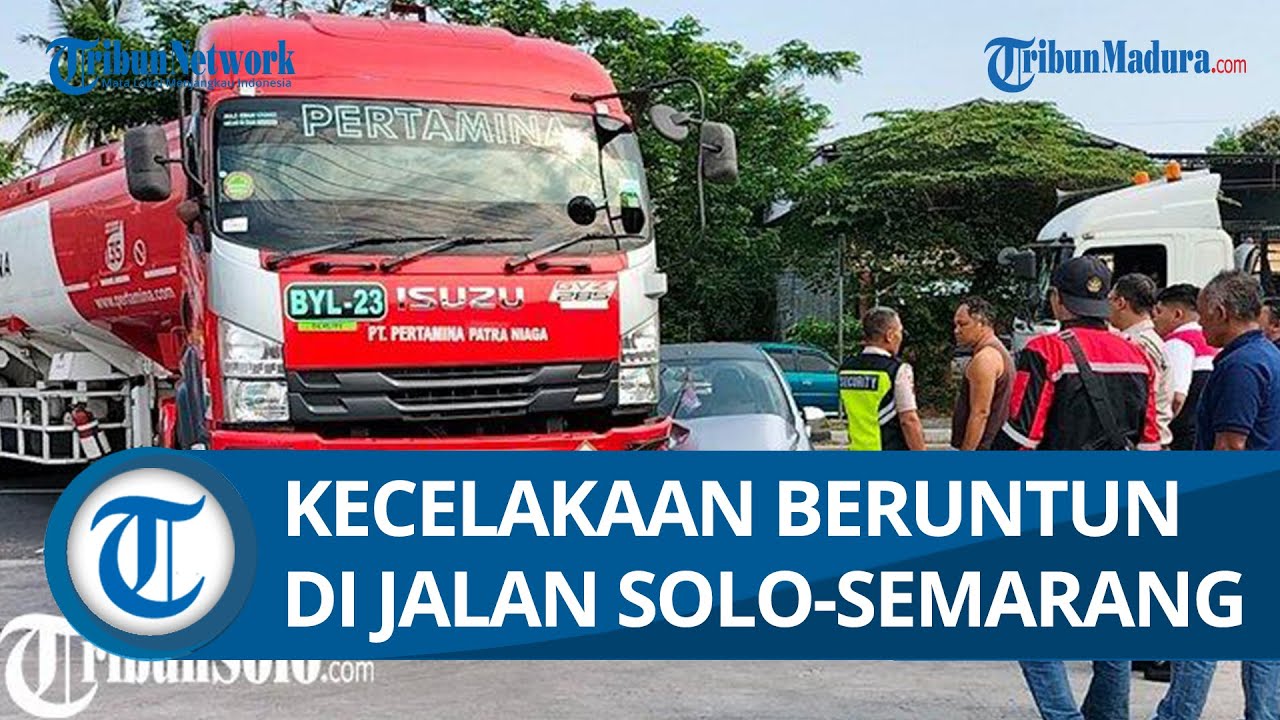 TRIBUN-VIDEO.COM - Kecelakaan beruntun terjadi di jalan Solo-Semarang, tepatnya di bukaan median jalan depan terminal pengisian bahan bakar minyak (TBBM) Teras, Minggu (21/8/2022).