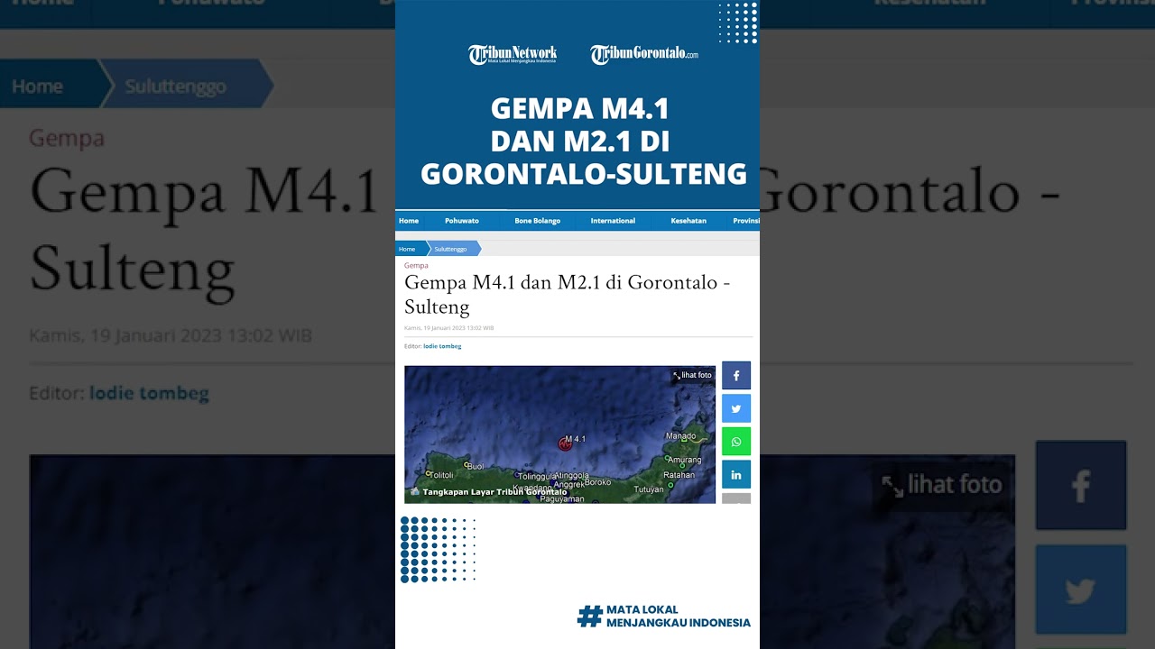 Artikel ini telah tayang di TribunGorontalo.com dengan judul: Gempa M4.1 dan M2.1 di Gorontalo - Sulteng