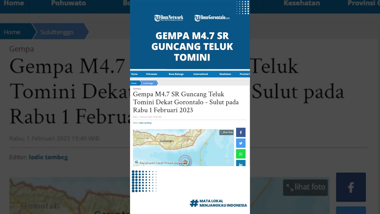 Artikel ini telah tayang di TribunGorontalo.com dengan judul: Gempa M4.7 SR Guncang Teluk Tomini Dekat Gorontalo - Sulut pada Rabu 1 Februari 2023