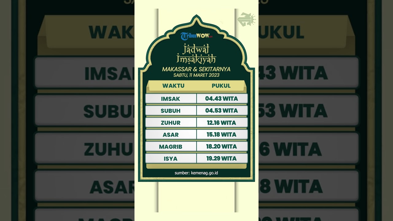 TRIBUN-VIDEO.COM - Simak jadwal imsakiyah wilayah Makassar dan sekitarnya untuk Sabtu (11/3/2023), bagi Anda yang ingin melakukan ibadah puasa besok.