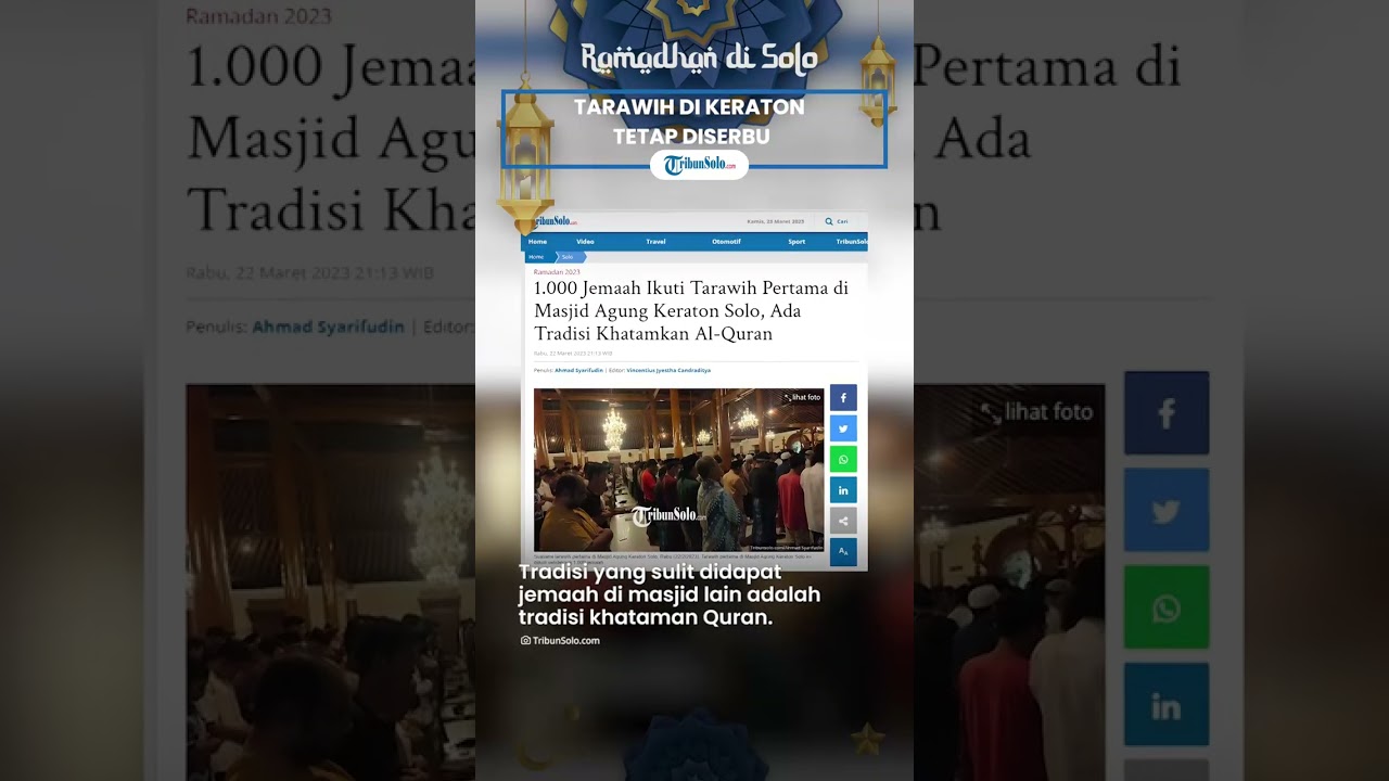Artikel ini telah tayang di TribunSolo.com dengan judul 1.000 Jemaah Ikuti Tarawih Pertama di Masjid Agung Keraton Solo, Ada Tradisi Khatamkan Al-Quran
