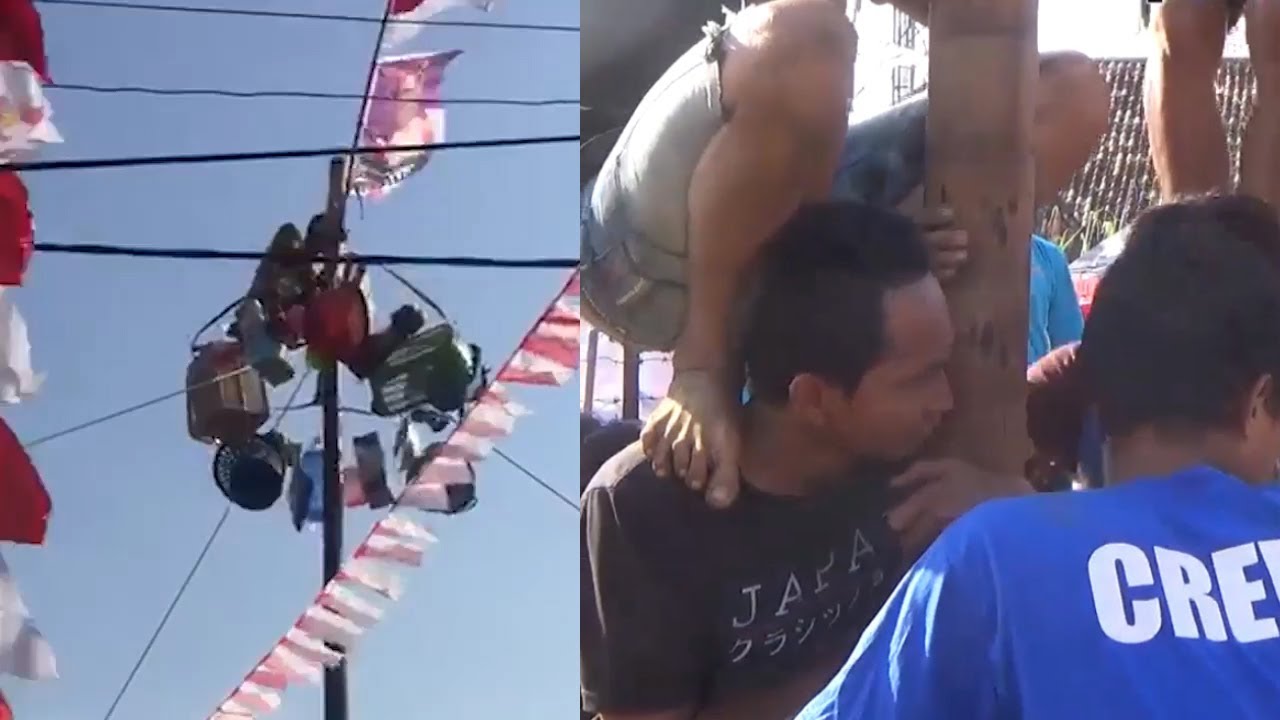 Uniknya Lomba Panjat Pinang Warga Bungaran 8 Ulu