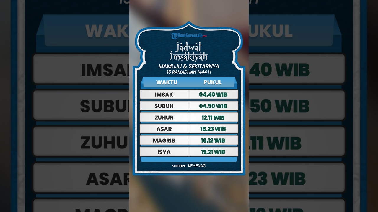 TRIBUN-VIDEO.COM - Simak jadwal imsakiyah wilayah Mamuju dan sekitarnya untuk 15 Ramadhan 1444 H, bagi Anda yang ingin melakukan ibadah puasa besok.