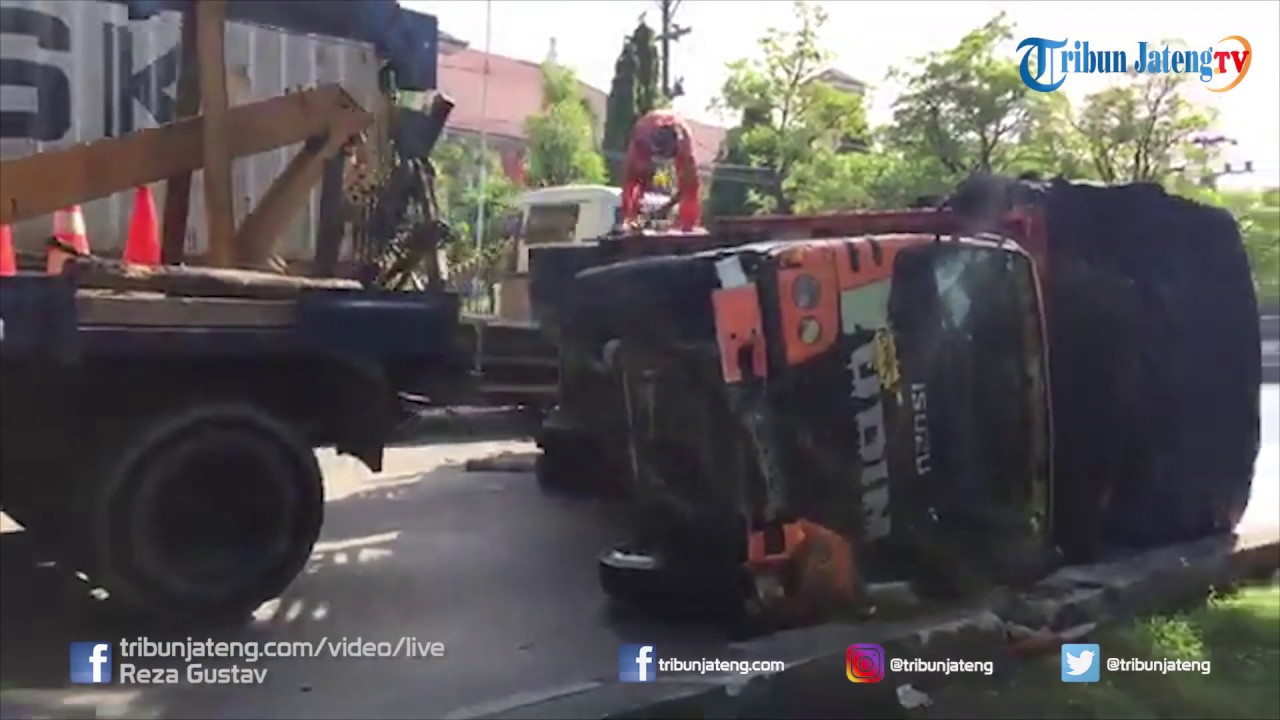 Truk berpelat nomor S 9383 QB tersebut terguling dan posisinya melintang jalan, tepatnya di depan Terminal Mangkang.
