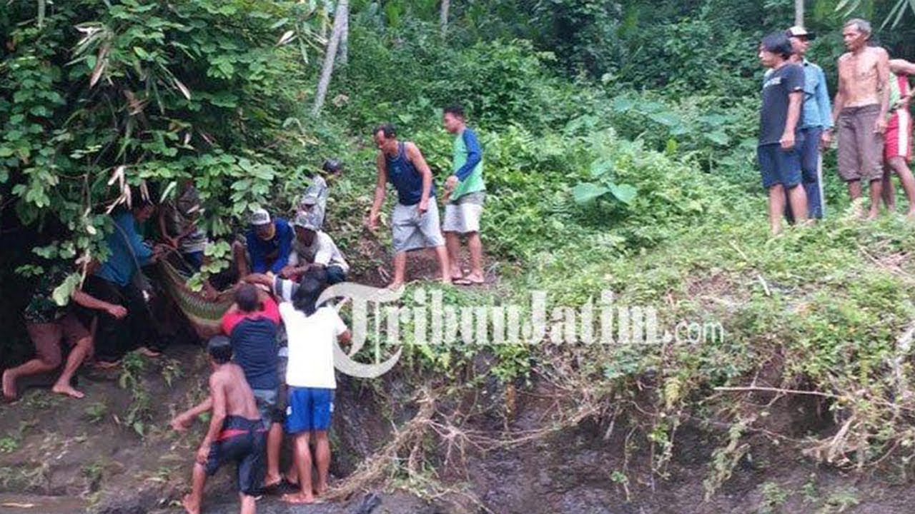 "Karena airnya dalam, warga mencari cara bagaimana bisa mengangkat mayat korban dari sungai. Akhirnya, itu dilakukan dengan cara ditarik tali, untuk ditepikan kemudian baru diangkat ramai-ramai," papar Lahuri.