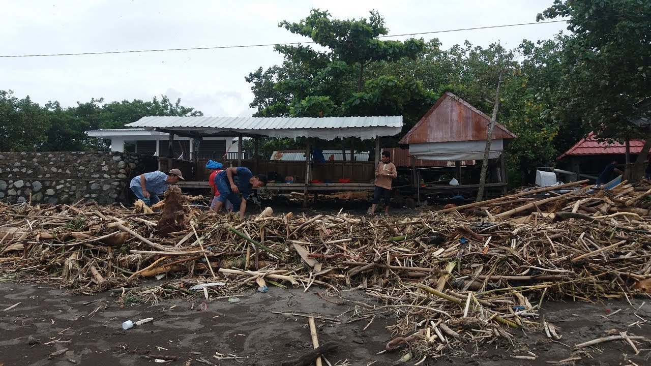 Sampah kayu dengan ukuran besar, ini juga mengakibatkan kerusakan rumah-rumah kecil yang berada tidak jauh dari pantai, akibat arus ombak dan angin.