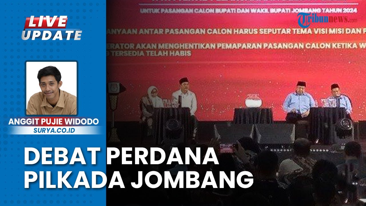 TRIBUN-VIDEO.COM - Debat publik pertama pasangan calon (Paslon) Pilkada Jombang 2024 digelar di Ballroom Hotel Yusro Jombang pada Sabtu (19/10/2024) malam.