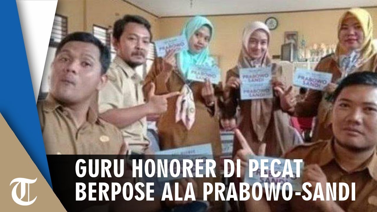 TRIBUN-VIDEO, KRONJO - Nasib tragis menimpa guru honorer setelah mengabadikan momen berpose ala pasangan Capres dan Cawapres nomor urut 02, Prabowo-Sandi.