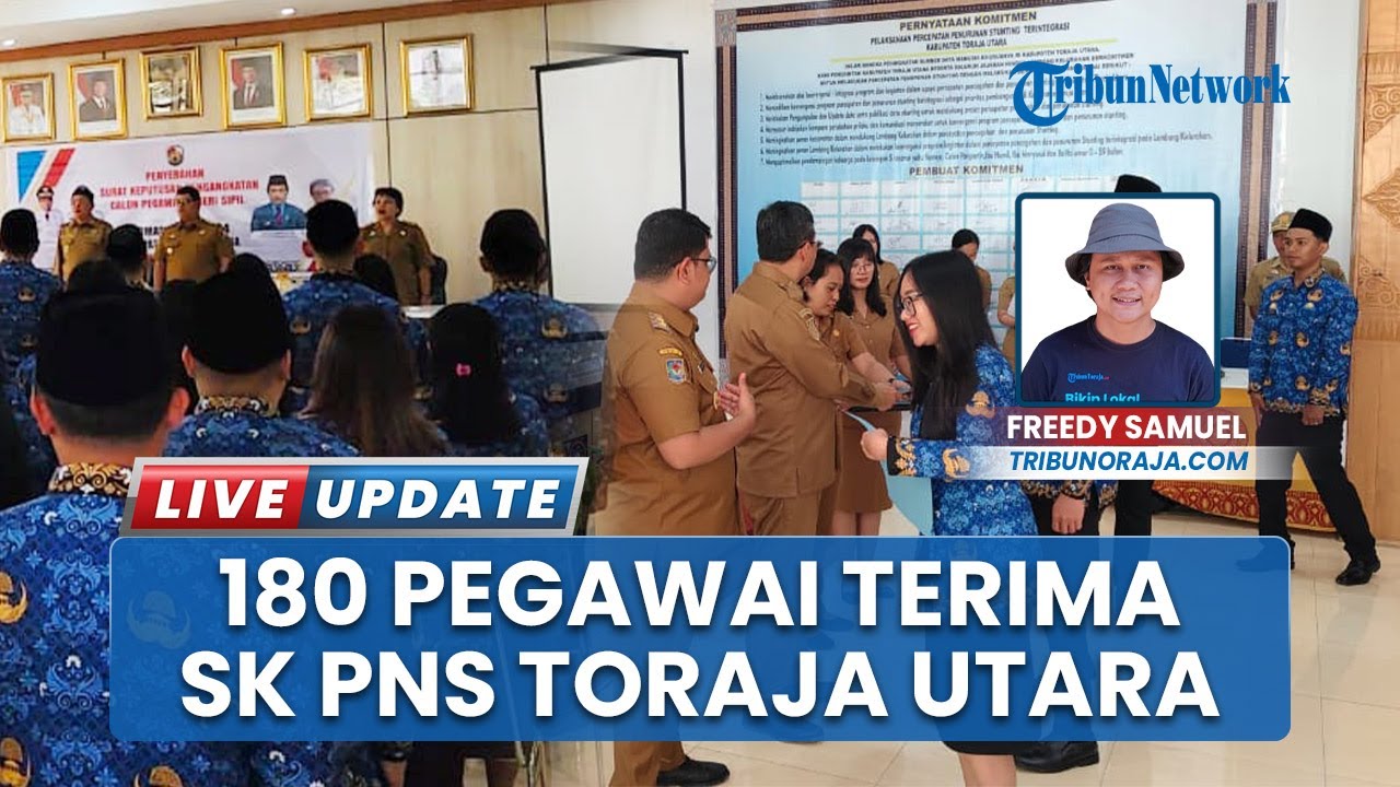 TRIBUN-VIDEO.COM - Pemkab Toraja Utara mengelar kegiatan penyerahan Surat Keputusan (SK) pengangkatan Calon Pegawai Negeri Sipil (CPNS) menjadi PNS Toraja Utara.