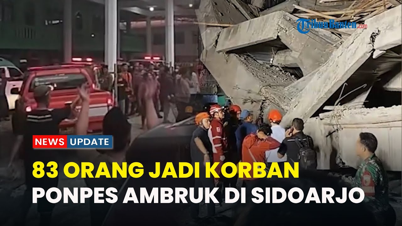 TRIBUN-VIDEO.COM - 83 orang menjadi korban ambruknya bangunan tiga lantai di Pondok Pesantren Al-Khoziny, Buduran, Sidoarjo, Jawa Timur (Jatim), (29/9/2025) sore.