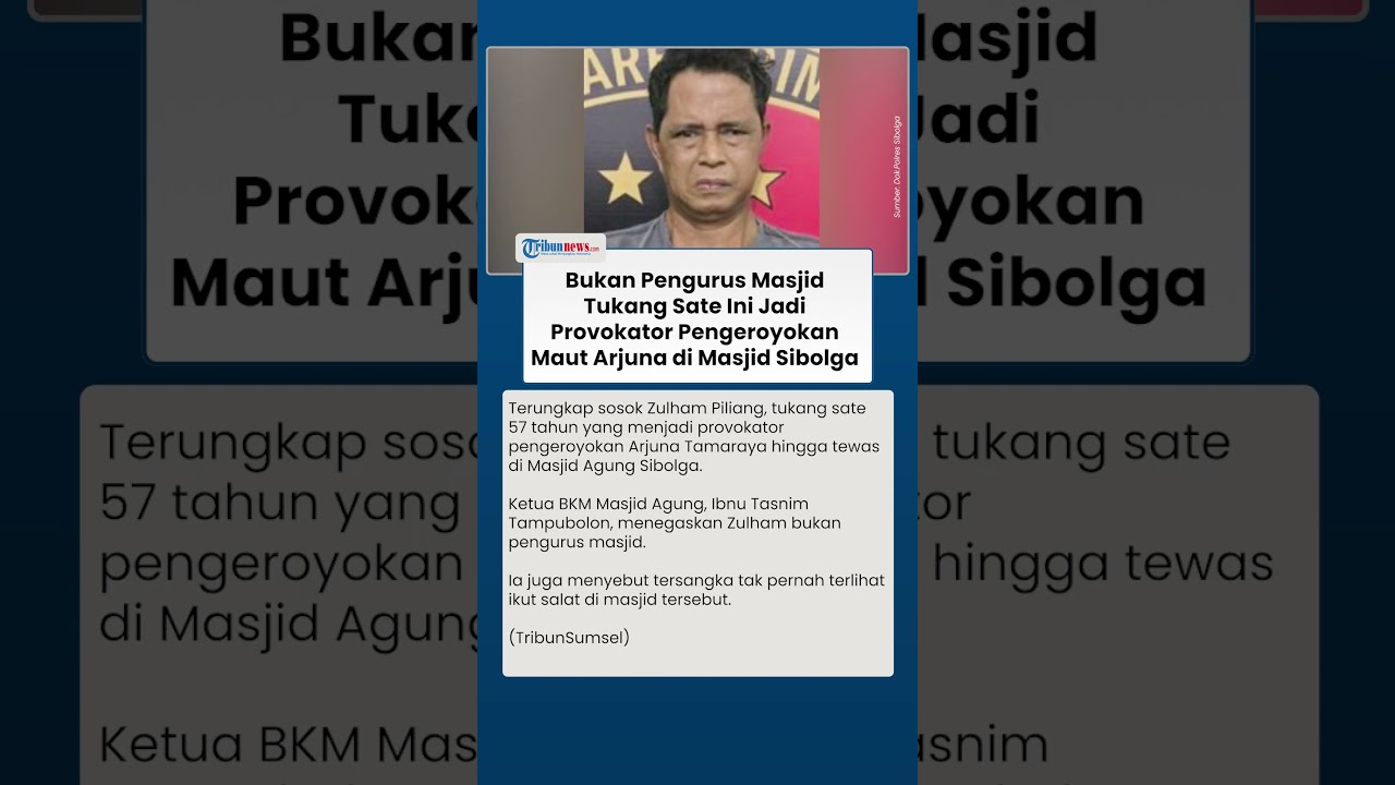 TRIBUN-VIDEO.COM-Terungkap sosok Zulham Piliang, tukang sate 57 tahun yang menjadi provokator pengeroyokan Arjuna Tamaraya hingga tewas di Masjid Agung Sibolga.