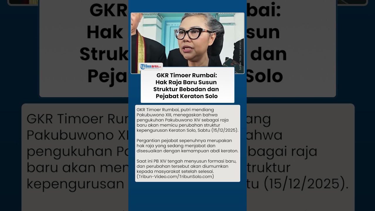TRIBUN-VIDEO.COM - GKR Timoer Rumbai, putri mendiang Raja Keraton Kasunanan Solo SISKS Pakubuwono XIII, angkat bicara mengenai rencana perubahan struktur bebadan atau kepengurusan Keraton Solo menyusul pengukuhan SISKS Pakubuwono XIV sebagai raja baru.