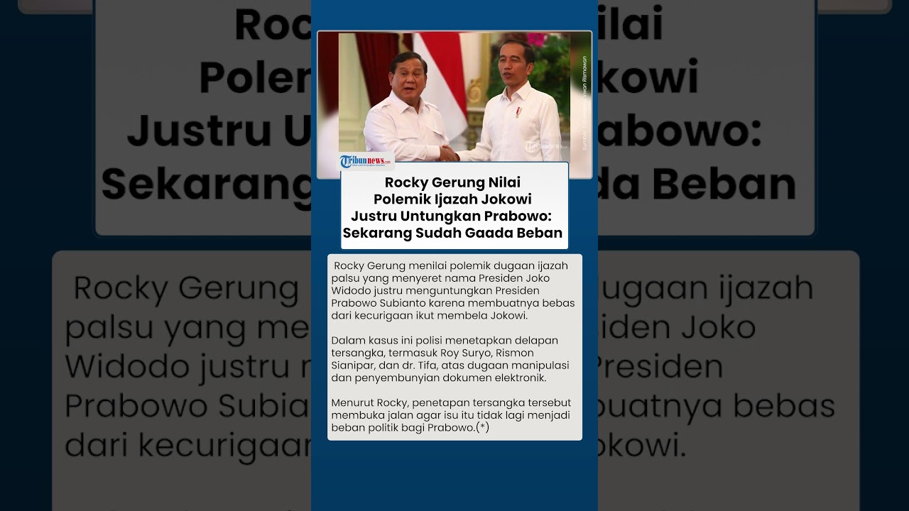 TRIBUN-VIDEO.COM - Rocky Gerung menilai polemik dugaan ijazah palsu yang menyeret nama Presiden Joko Widodo justru menguntungkan Presiden Prabowo Subianto karena membuatnya bebas dari kecurigaan ikut membela Jokowi.