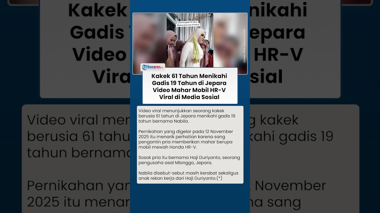 Viral di Jepara! Kakek 61 Tahun Nikahi Gadis 19 Tahun, Mahar Mewah Mobil Honda HR-V Jadi Sorotan