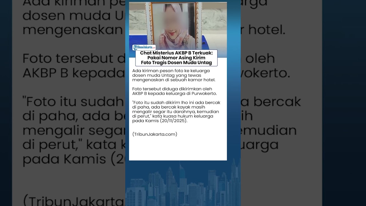 TRIBUN-VIDEO.COM - Ada kiriman pesan foto ke keluarga dosen muda Untag yang tewas mengenaskan di sebuah kamar hotel.