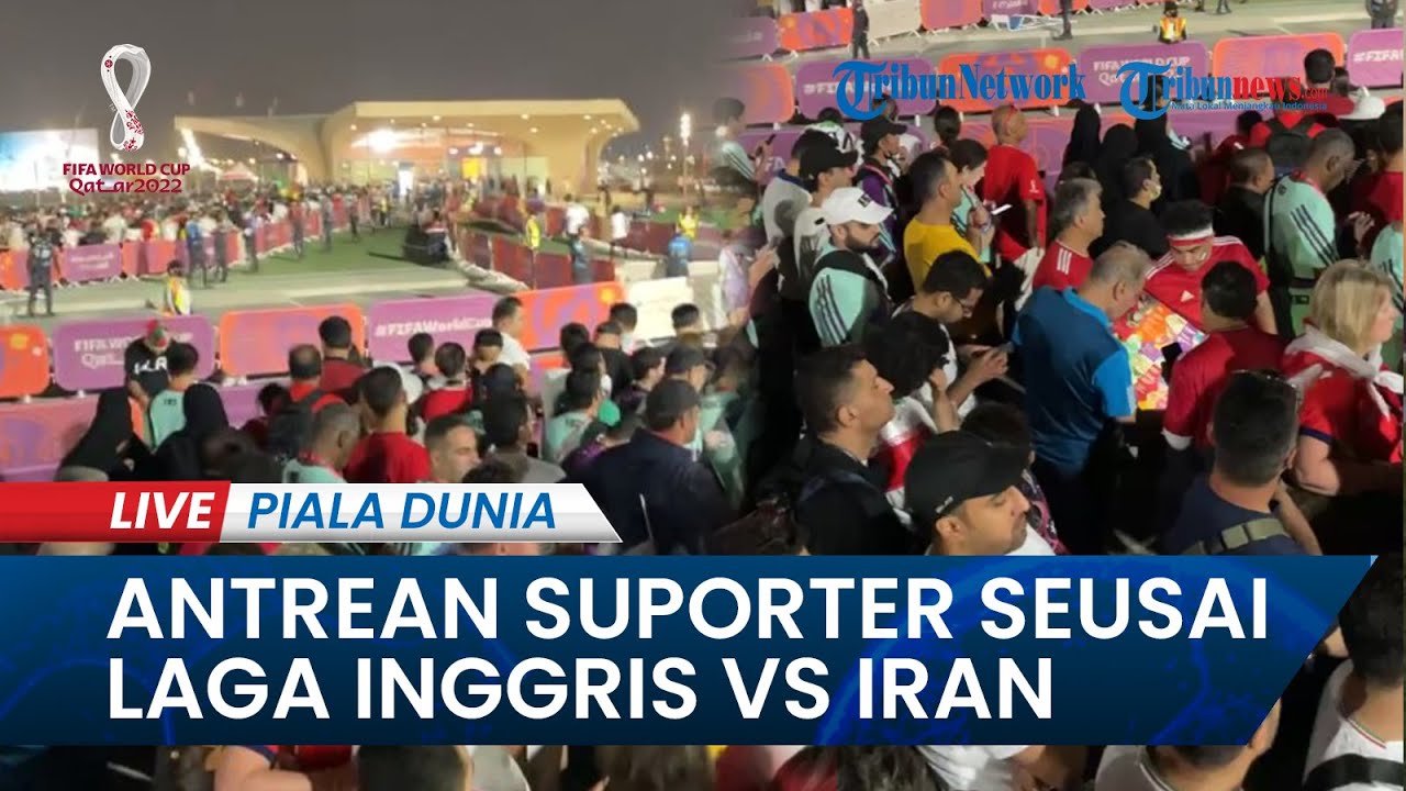 TRIBUN-VIDEO.COM - Antrean suporter mengular usai laga Inggris Vs Ukraina di Stadion Internasional Khalifa berakhir, Senin (22/11/2022).