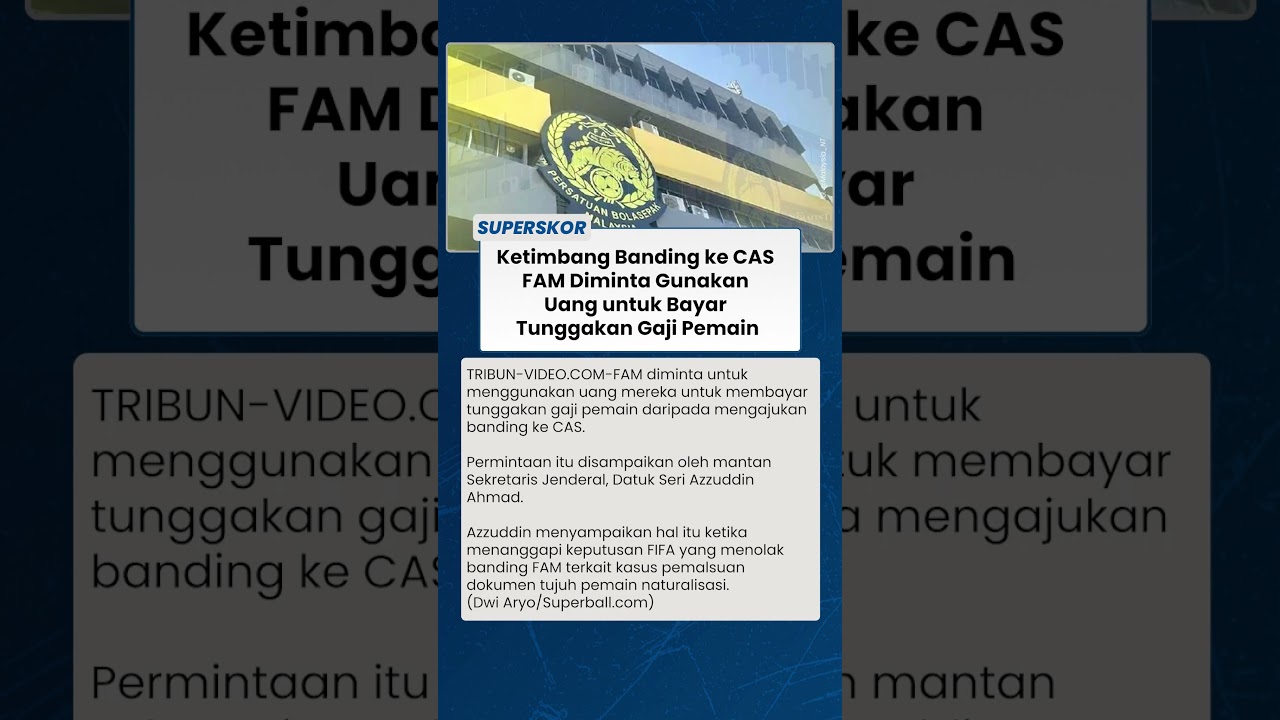 TRIBUN-VIDEO.COM - FAM diminta untuk menggunakan uang mereka untuk membayar tunggakan gaji pemain daripada mengajukan banding ke CAS.