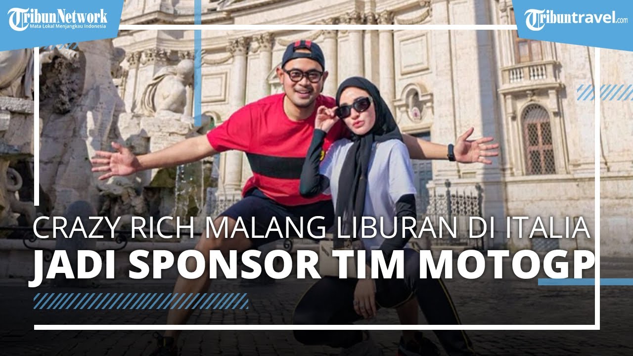 Pasangan suami istri berjuluk crazy rich Malang ini berpose bersama di depan bangunan artistik Italia.
