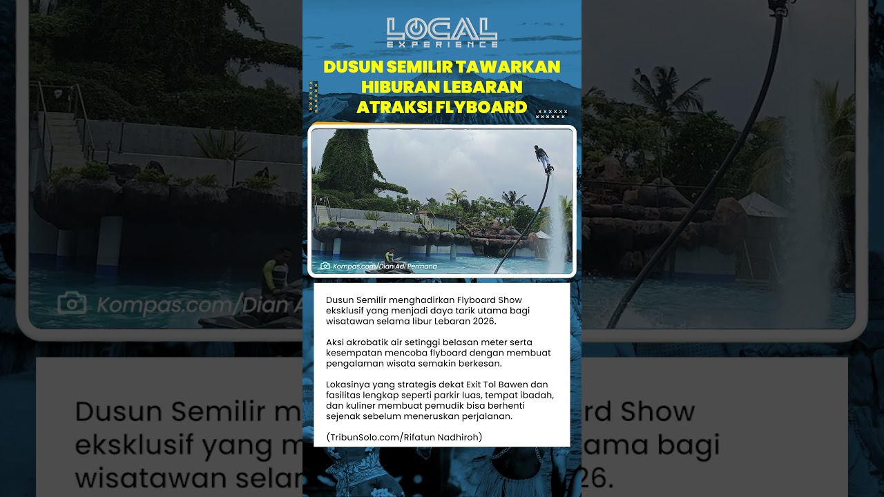 "Dengan area parkir luas, fasilitas ibadah yang bersih, serta ragam kuliner Nusantara, pemudik bisa mengisi energi kembali sebelum melanjutkan perjalanan, sekaligus menikmati Flyboard Show yang spektakuler," tambah Haryo Priambodo selaku Head of Sales Marketing Dusun Semilir.