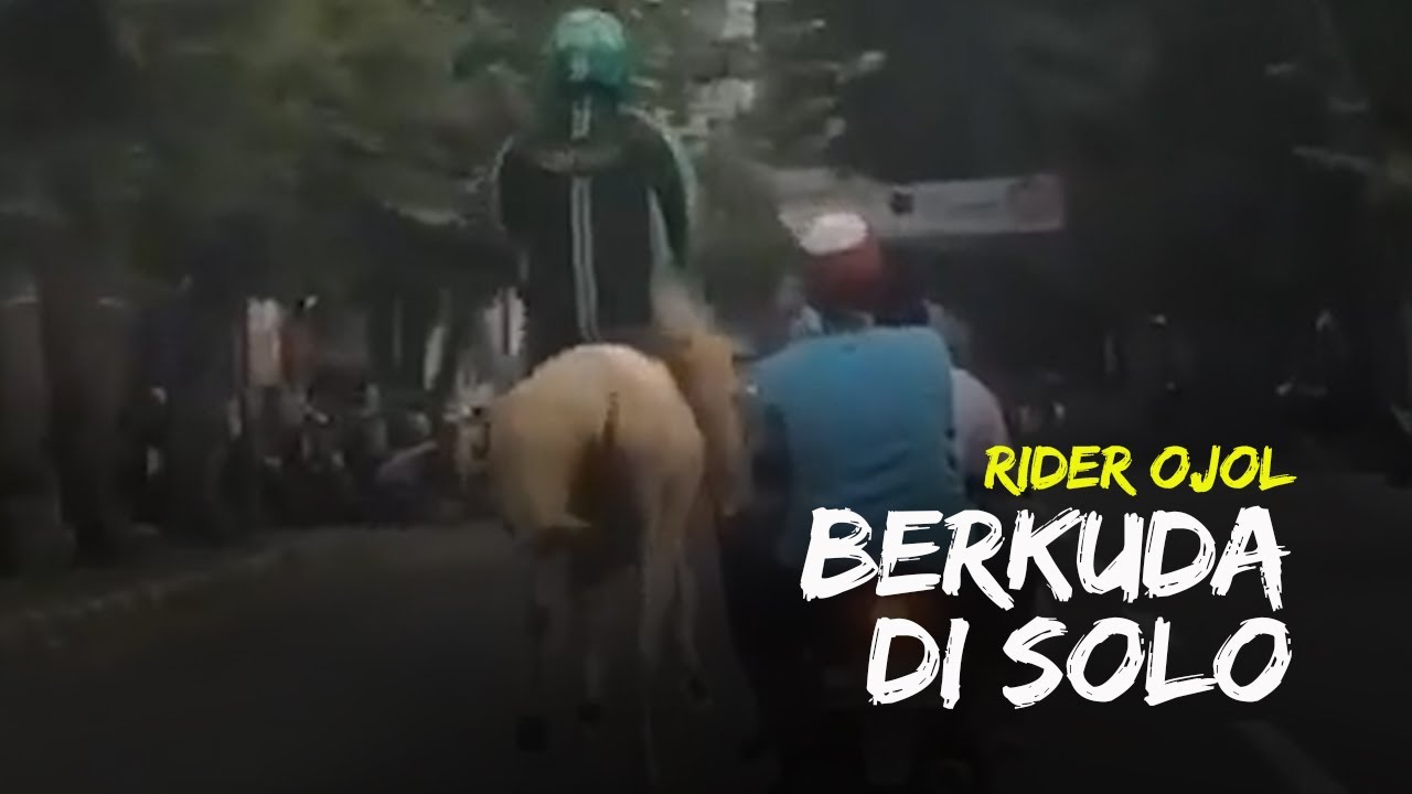 Viral Video Pria dengan Atribut Ojol Tunggangi Kuda di Jalanan Solo