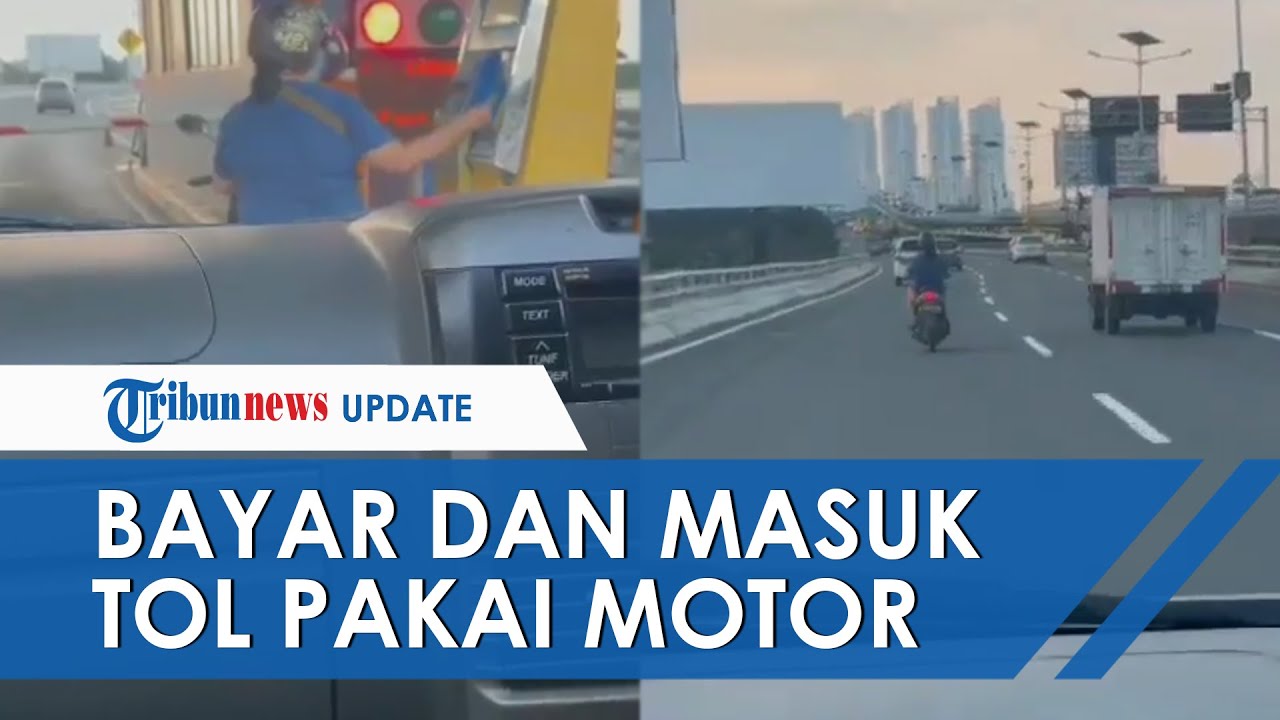 Video yang diambil oleh pengemudi mobil itu menunjukkan seorang perempuan mengenakan kaos biru dan mengendarai motor tengah berhenti di gerbang tol.