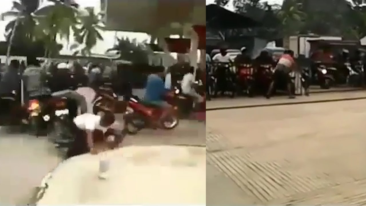 Puluhan Warga Serbu Pom Bensin, Seorang Warga Terpental dari Motor