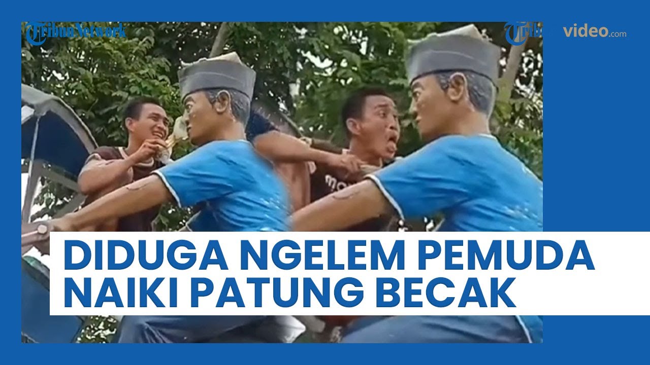 Diduga Akibat Ngelem Pemuda di Makassar Malah Naiki Patung Becak
