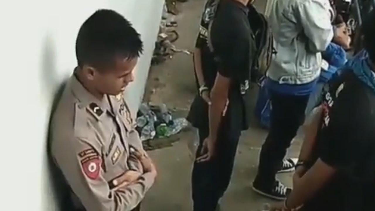 Dalam video tersebut tampak seorang polisi sedang bertugas, berjaga di sebuah pertandingan sepak bola.