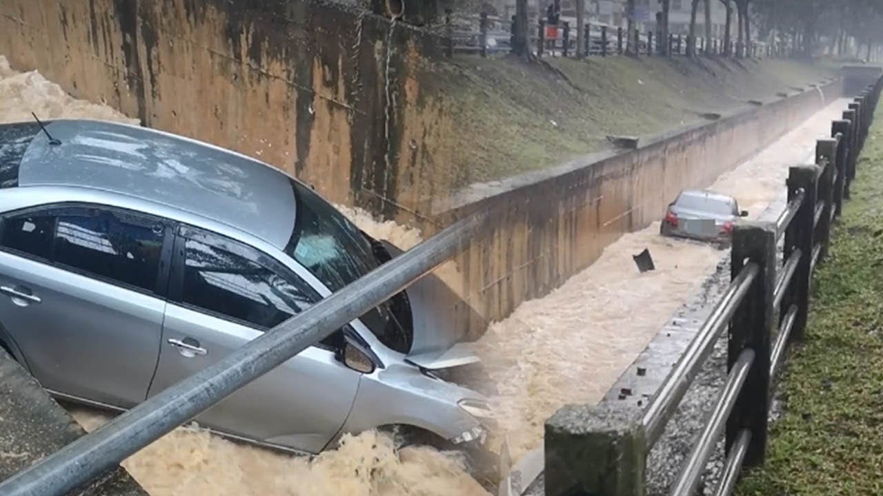 Viral Video Mobil Terjun ke Drainase setelah Tabrak Pembatas Jalan hingga Terseret Air