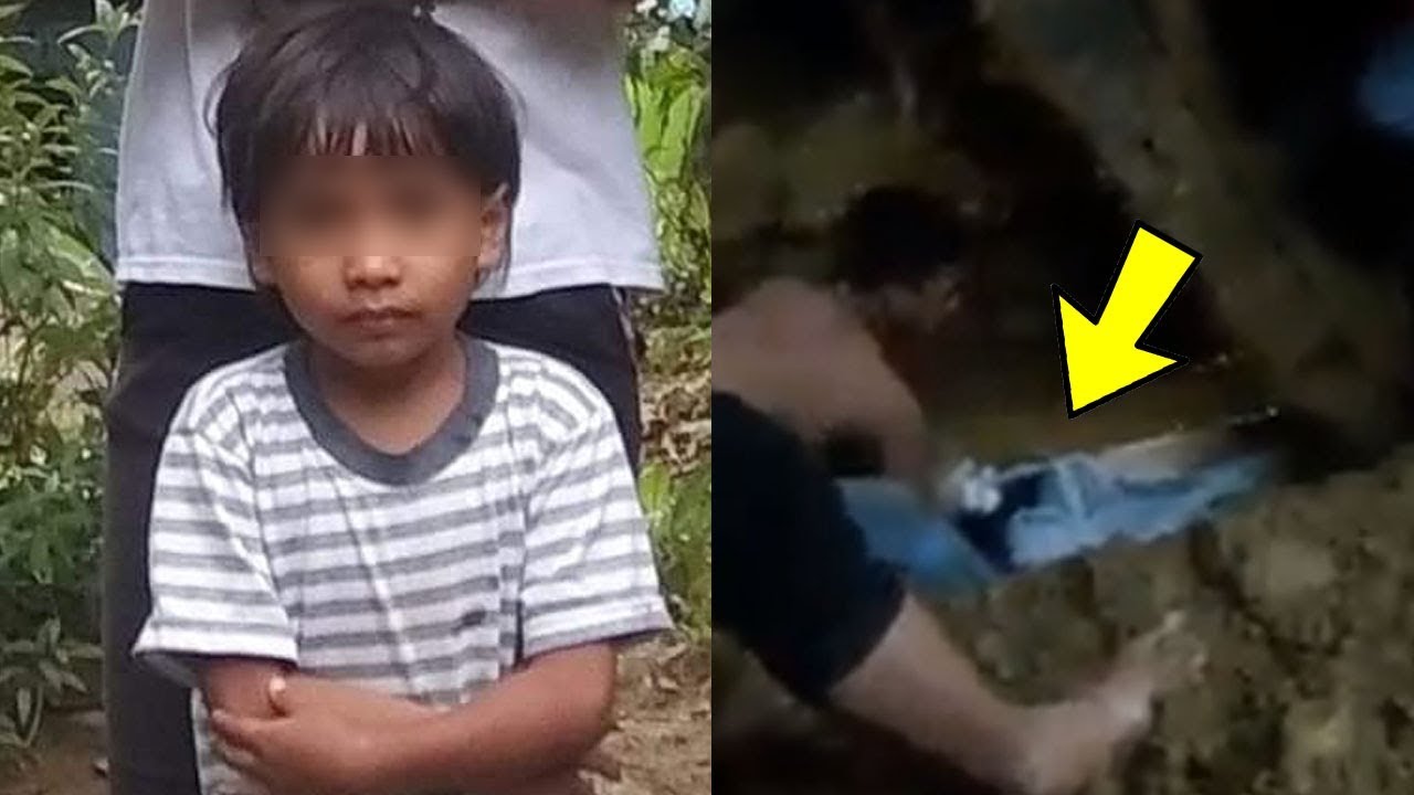 Tubuh sang anak tersebut diangkat dari dalam peti yang telah terkubur.