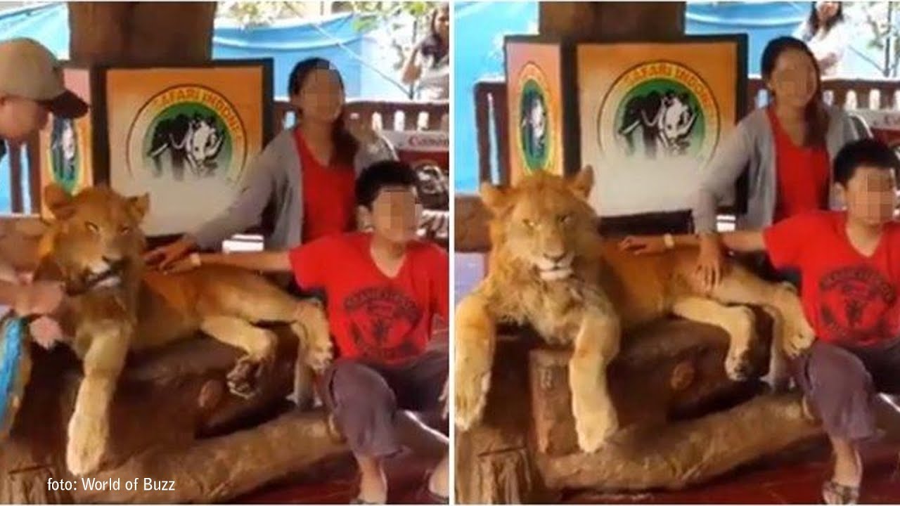 Berfoto bersama hewan yang terkenal buas seperti singa atau harimau terkadang dianggap sesuatu yang hebat.