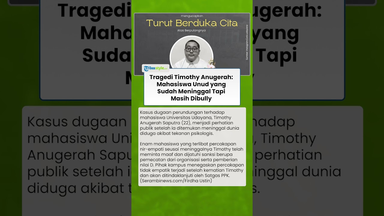 Artikel ini telah tayang di SerambiNews.com dengan judul Kisah Timothy Anugerah, Mahasiswa Unud Meninggal Bunuh Diri tapi Masih Dibully, Disebut Mirip Kekeyi