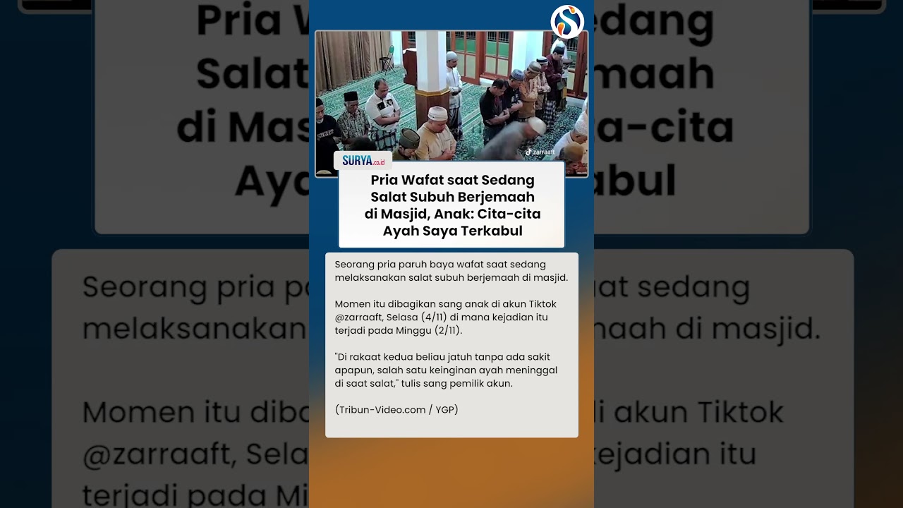 TRIBUN-VIDEO.COM - Seorang pria paruh baya wafat saat sedang melaksanakan salat subuh berjemaah di masjid.