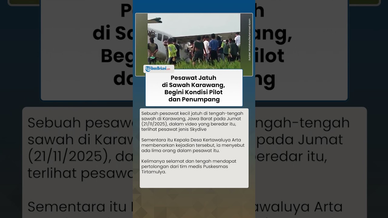 TRIBUN-VIDEO.COM - Sebuah pesawat kecil jatuh di tengah-tengah sawah di Karawang, Jawa Barat pada Jumat (21/11/2025).