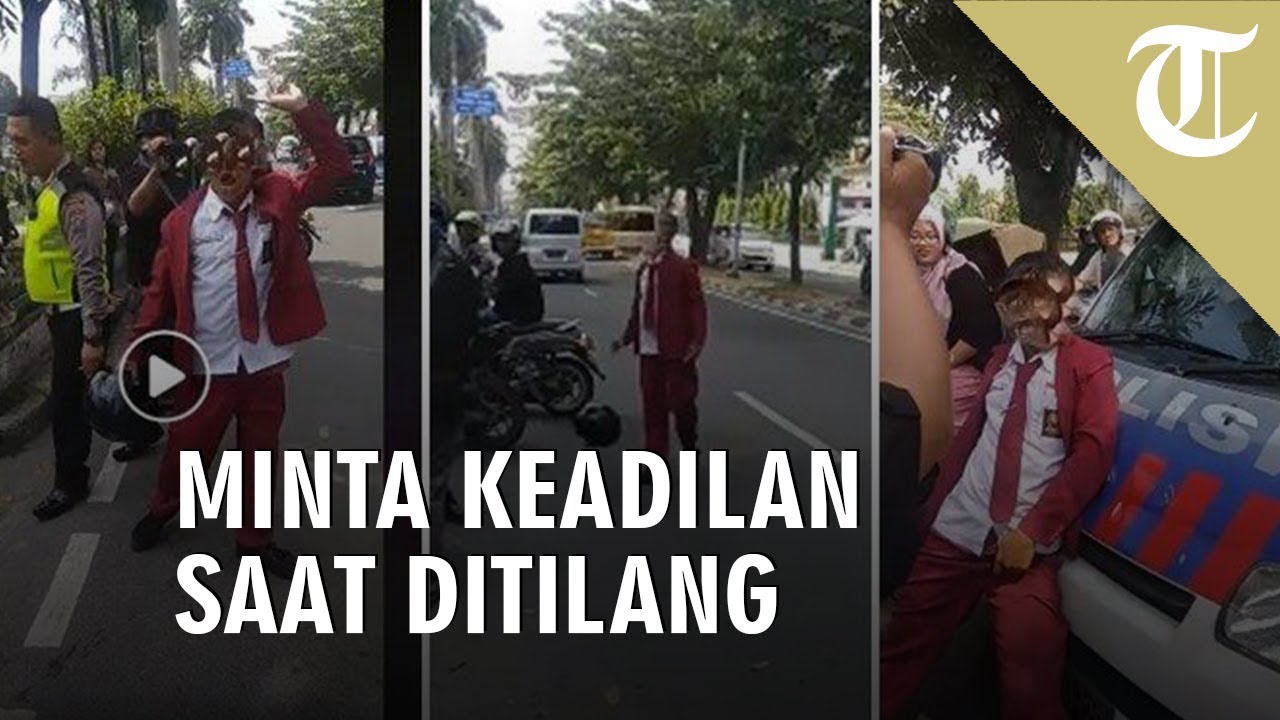 Dalam video viral, tampak seorang anak yang mengenakan seragam sekolah berwarna merah lengkap dengan dasi tampak tidak diterima ditilang petugas.